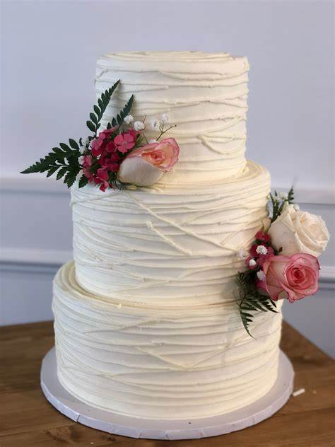 2. Rustic Charm: For those drawn to the rustic allure, a simple buttercream-frosted cake adorned with fresh blooms or greenery captures the essence of a countryside celebration. Sweet Sensations Austin effortlessly blends rustic charm with modern simplicity, creating a cake that complements any outdoor wedding.